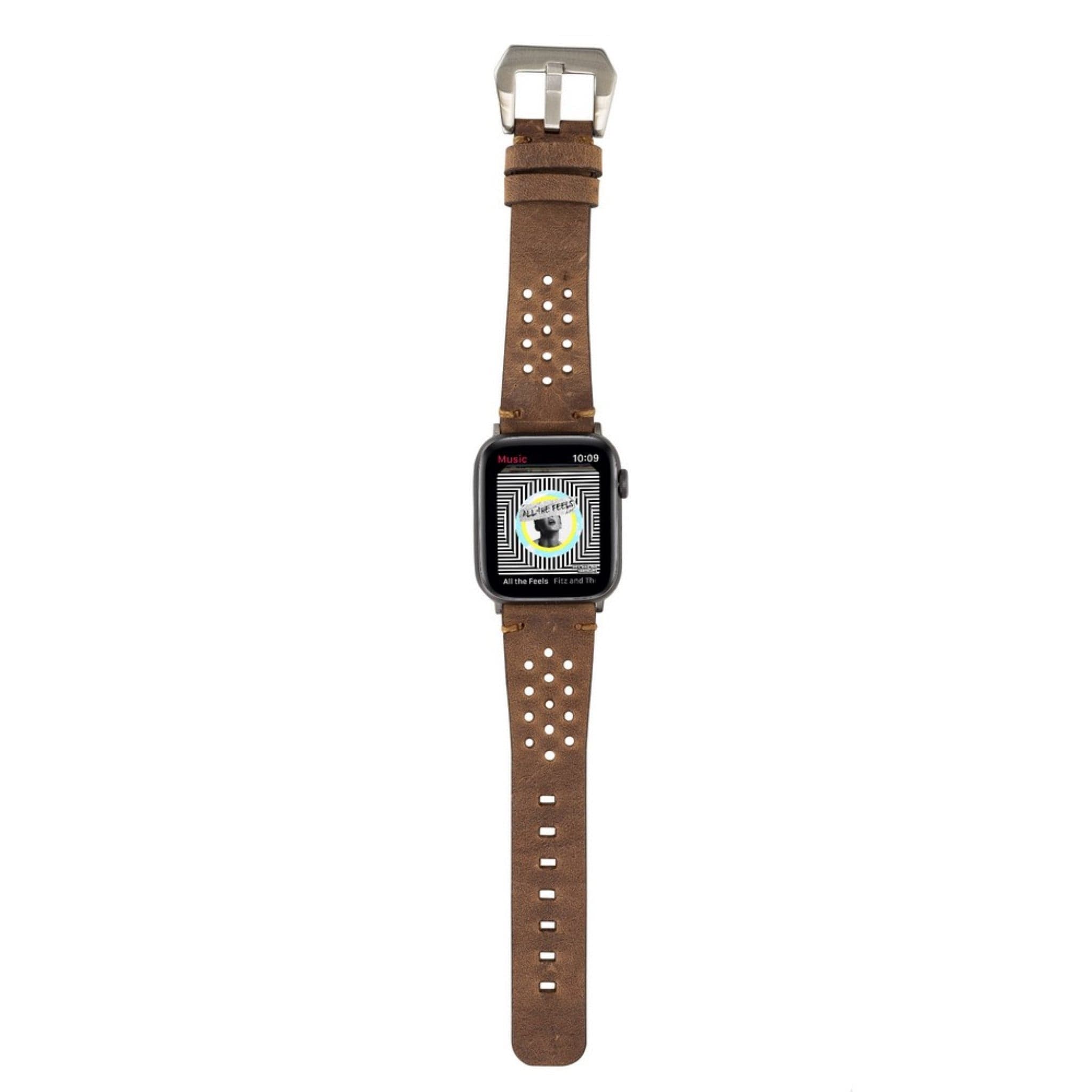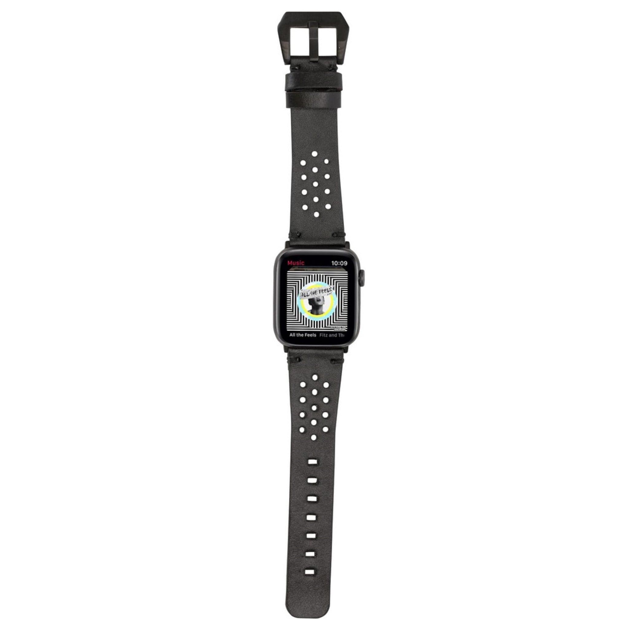 Examples of personalized Apple Watch bands on leather back