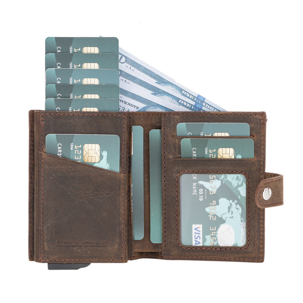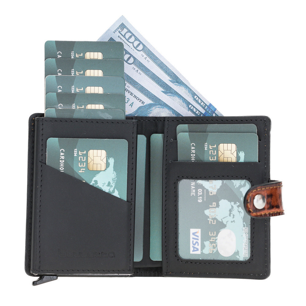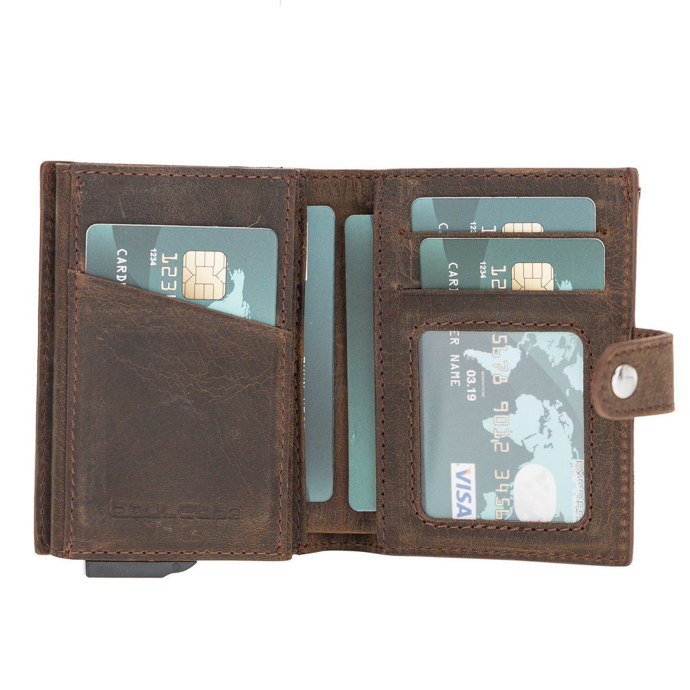 You can use it for credit cards or business card. A total of 9 cards can be stored.Provides quick access to your 3 most used cards Superior Quality Mechanism is used.